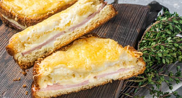 Nappez les tranches de pain de mie avec le mélange précédent. Déposez le jambon sur huit tranches de pain, puis refermez avec huit autres tranches. Coupez les bords (ou pas!). Badigeonnez les deux côtés des tranches avec du beurre fondu à l’aide d’un pinceau.